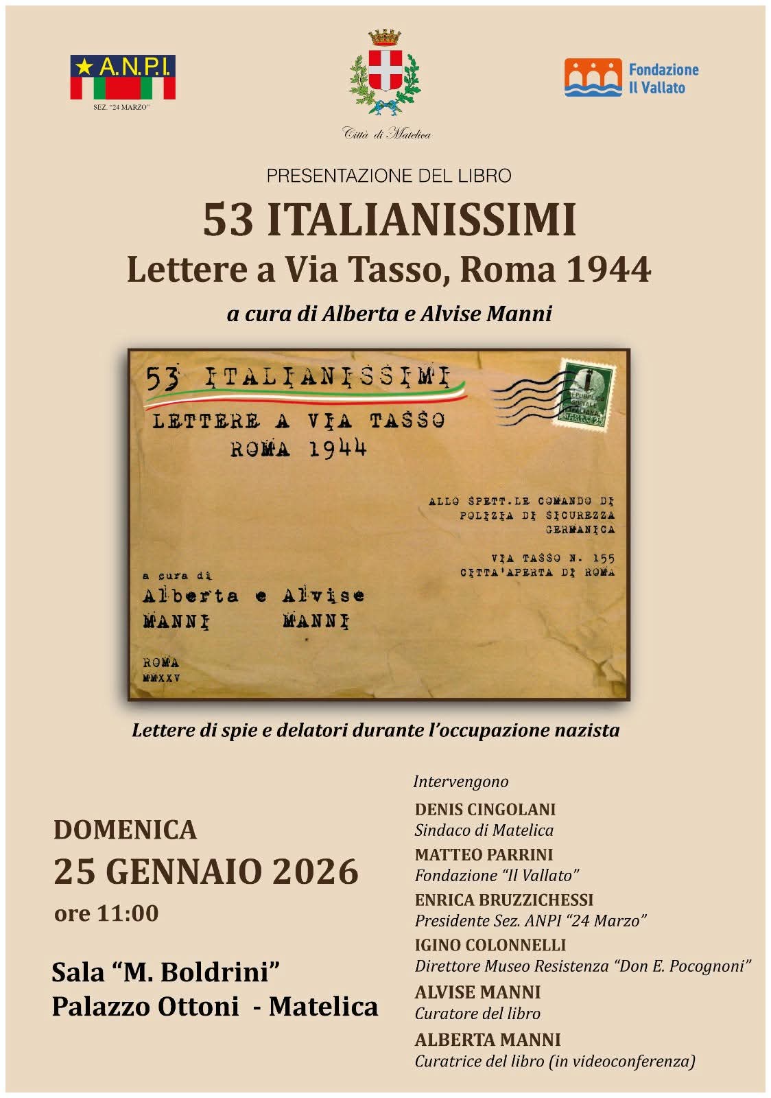 Presentazione del libro53 ITALIANISSIMIDI ALBERTO E ALVISE MANNIDOMENICA 25 GENNAIO ORE 11.00SALA BOLDRINI – PALAZZO OTTONI + Aggiungi a Google Calendar+ iCal / Outlook export Data25 Gen 2026Expired! Ora 11:00 LuogoSala convegni Palazzo Ottoni - Matelica Condividi questo evento