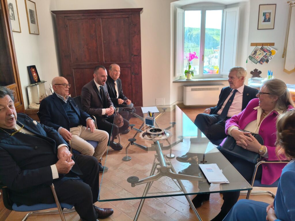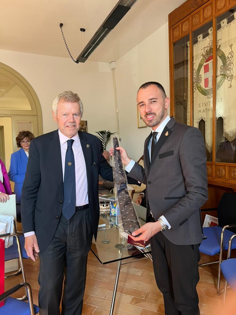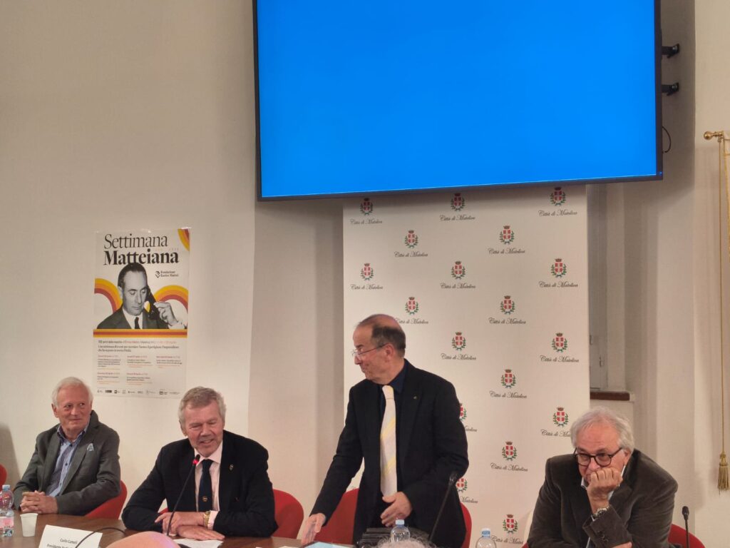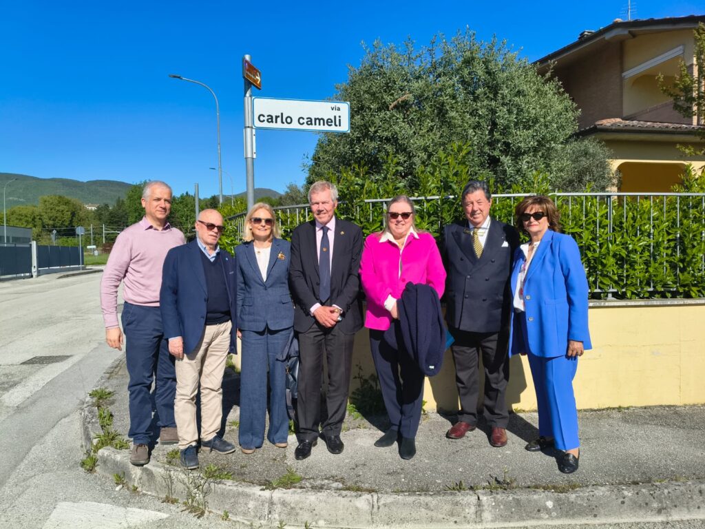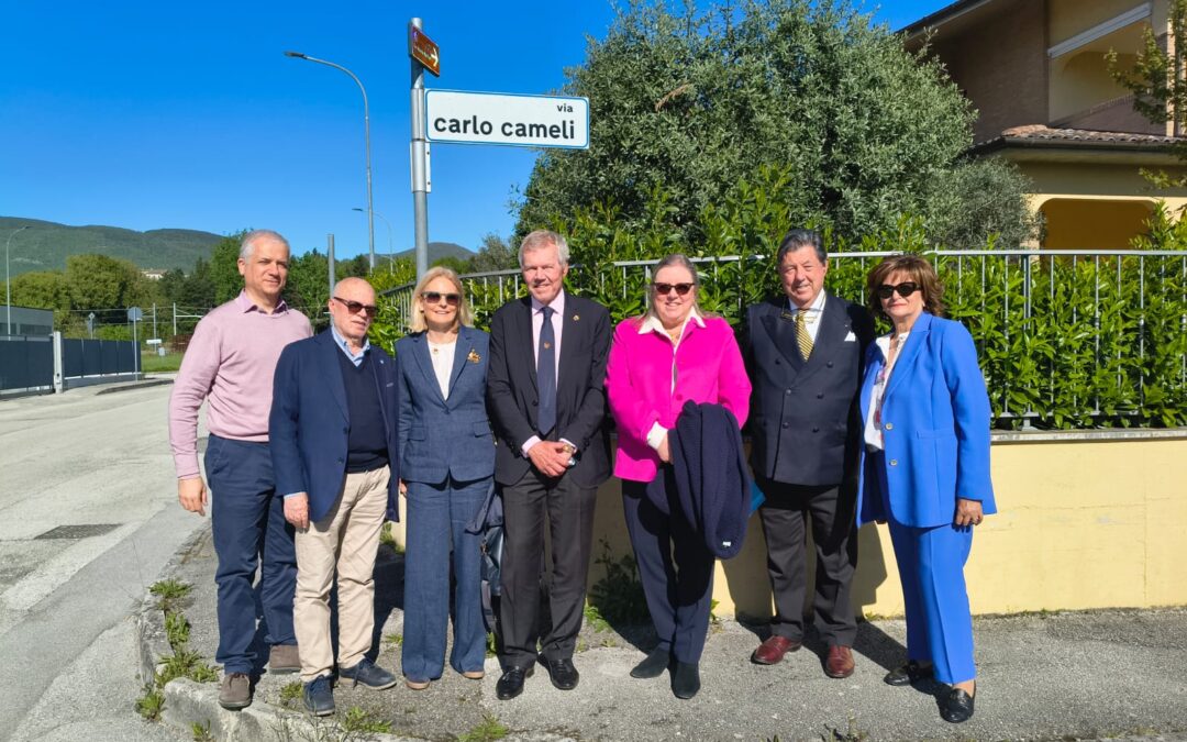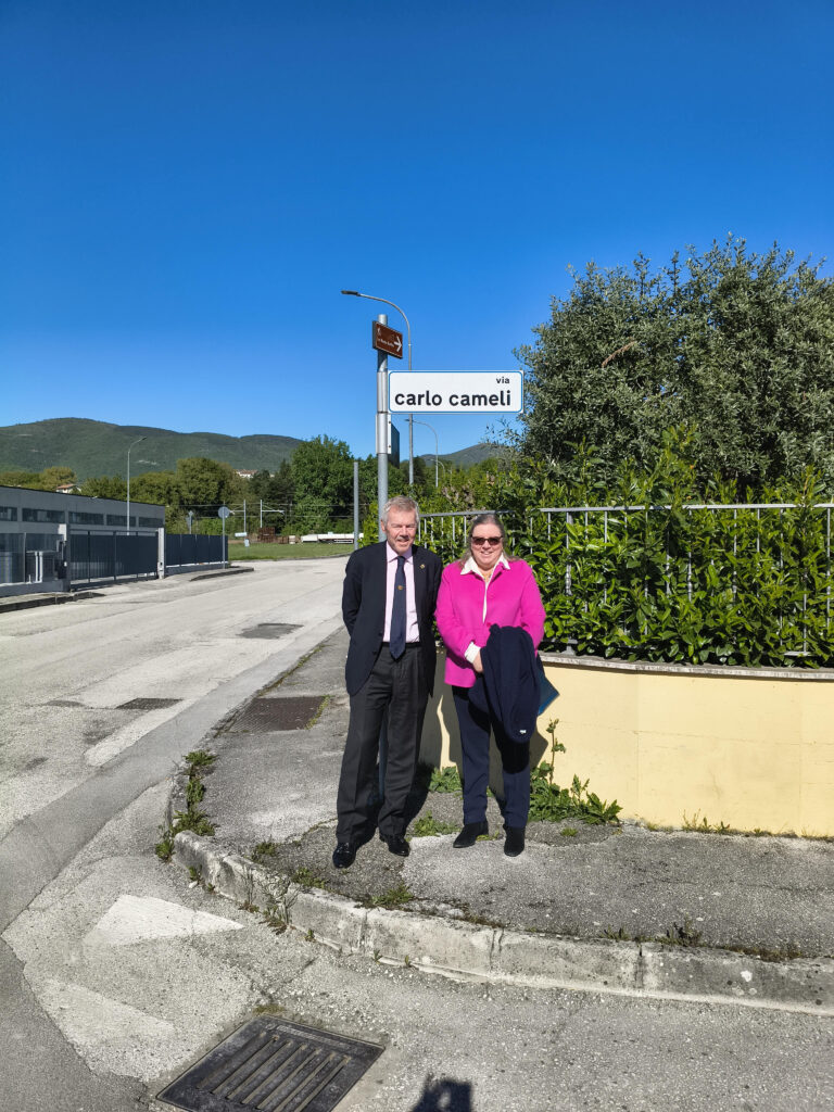 MATELICA – In occasione del primo convegno per i 120 anni della nascita di Enrico Mattei, lo scorso venerdì 24 aprile, sono stati ospiti a Matelica i signori Carlo e Anna Luisa Cameli, discendenti del matelicese Carlo Cameli (1873-1959), armatore e fondatore di una delle più importanti compagnie navali d’Europa, rappresentante di quel genius loci di cui ha parlato il presidente Antonio Roversi e che caratterizza il tessuto imprenditoriale matelicese e del nostro territorio. Tanti i ricordi che legano questa famiglia a Matelica. Accolti nella sede comunale e nella sede della Fondazione Il Fondazione “Il Vallato”, hanno avuto modo di fare una foto anche nella via intitolata alla memoria del loro nonno. Bellissimo l’intervento al convegno tenuto nella sala Boldrini di Palazzo Ottoni, con un momento di commozione nel ricordare le origini della famiglia, presente a Matelica almeno dal 1467 (con Carlo de Camello) e legata per secoli alla produzione dei pannilani.